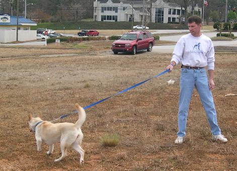 holding Lita's leash. Our dog trainer friend, Jana, took